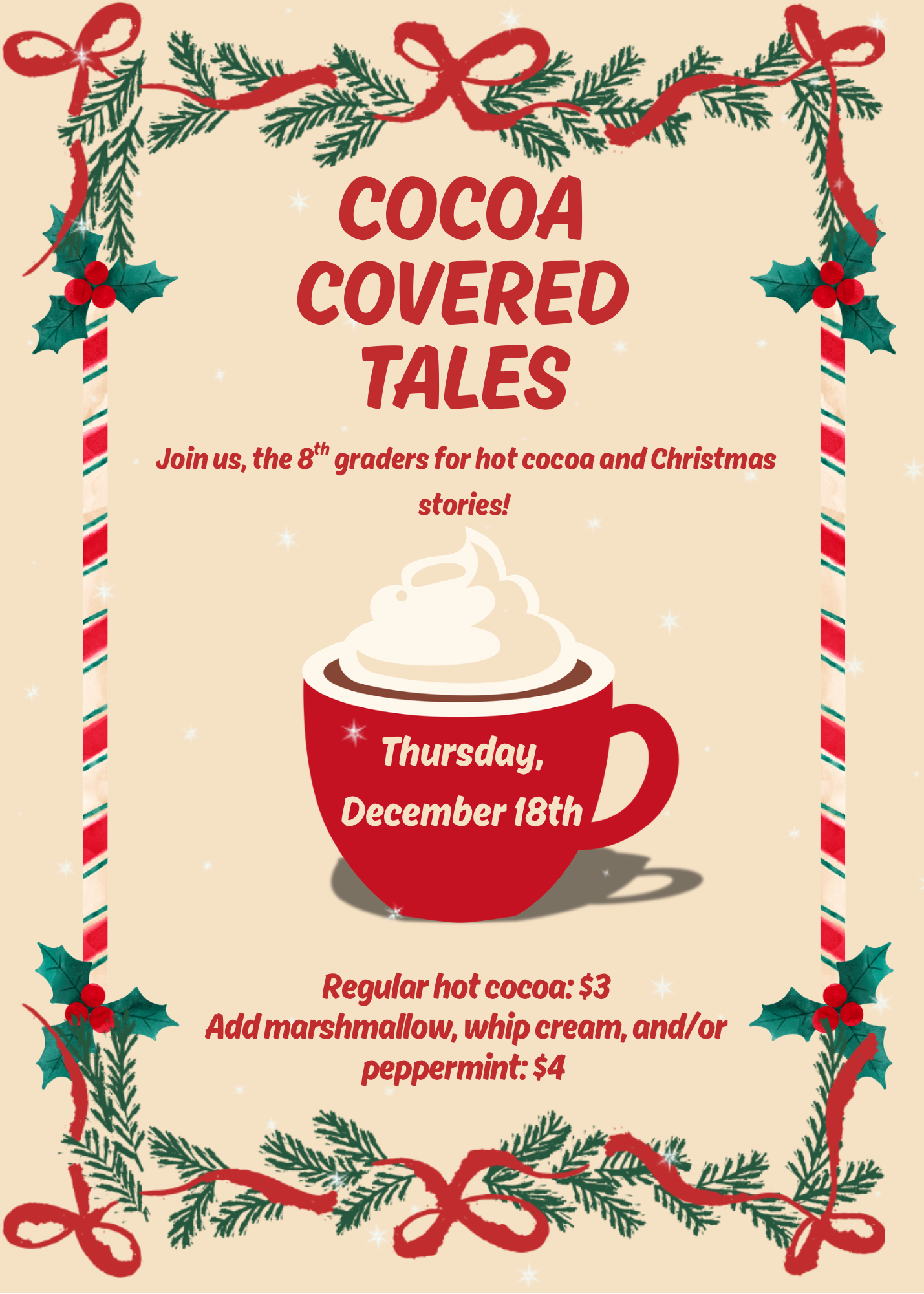 On Thursday December, 18th we will have: Cocoa Covered Tales a 📚✨ Community Service Reading Event! ✨📚